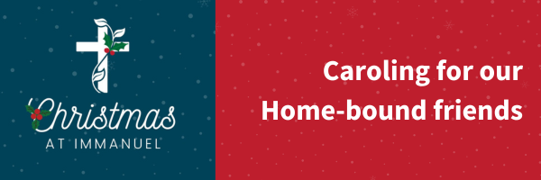 Immanuel's home-bound friends look forward to our visit and caroling each Advent season. Please sign up in advance (button below) so that we can have lunch for everyone before we head out to the homes on our list.